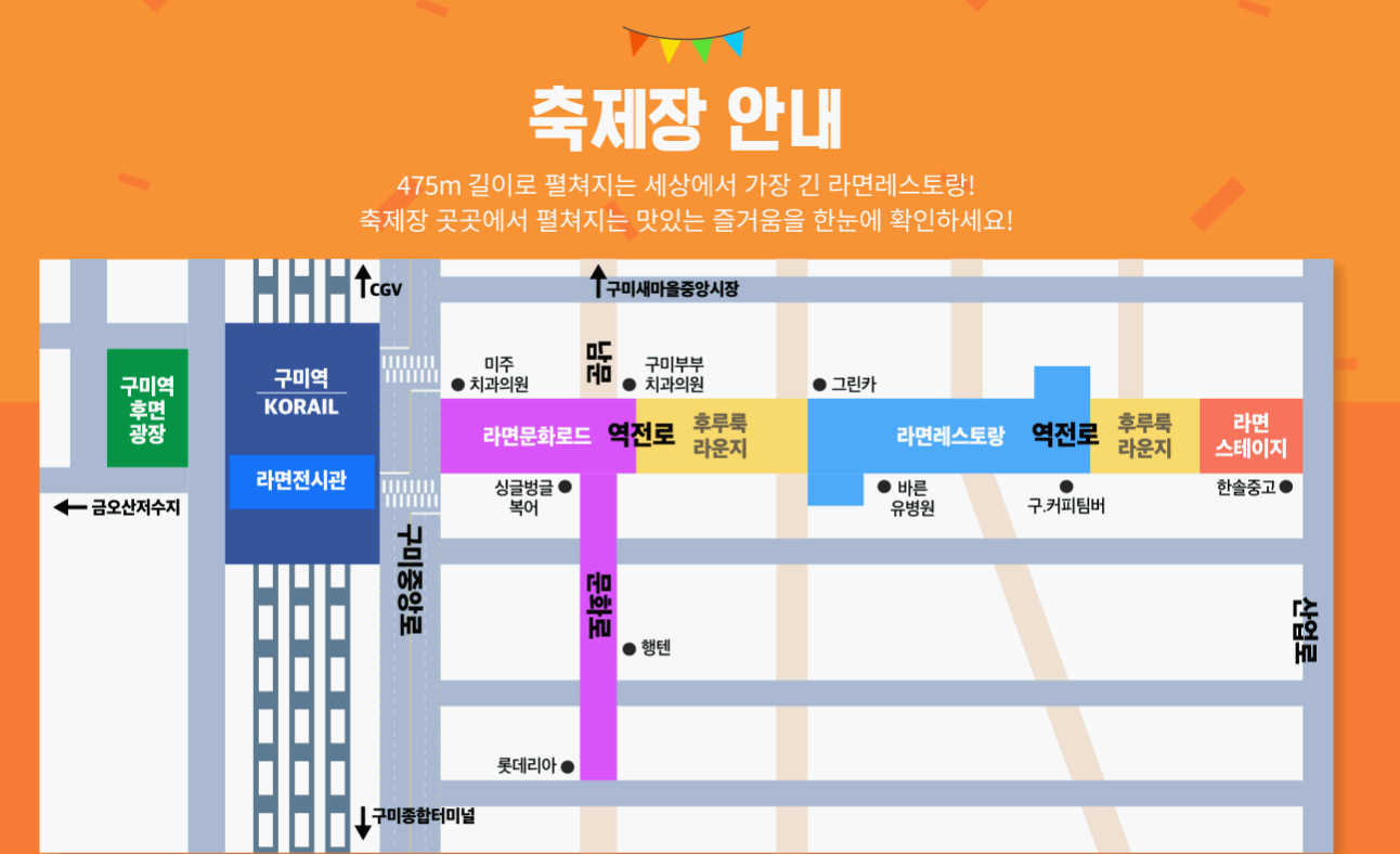 • 475m 최장 라면 거리 조성, 15개 구미 대표 맛집과 전국의 라면 맛집 참가