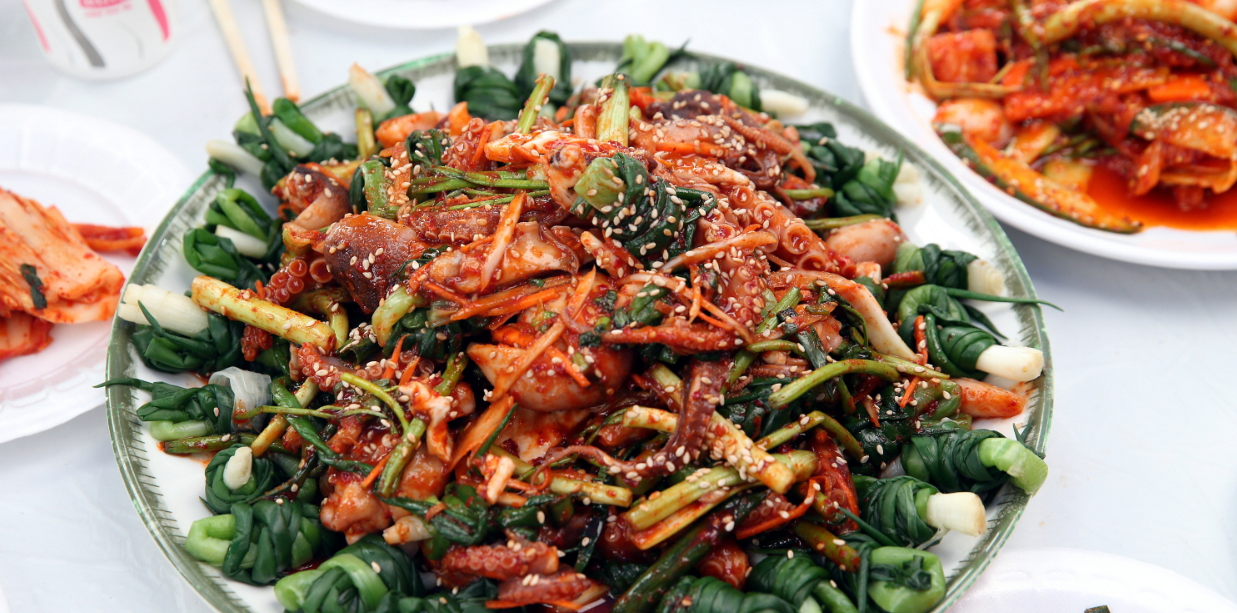축제장에 마련된 주꾸미 요리 장터에서는 갓 잡아 올린 신선한 주꾸미로 만든 다양한 요리를 맛볼 수 있어요.