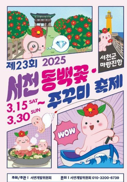 오늘은 충청남도 서천에서 열리는 아주 특별한 축제를 소개해드리려고 해요. 바로 '2025 서천 동백꽃 주꾸미 축제'인데요, 봄의 맛과 향을 동시에 즐길 수 있는 이 축제, 함께 살펴볼까요?