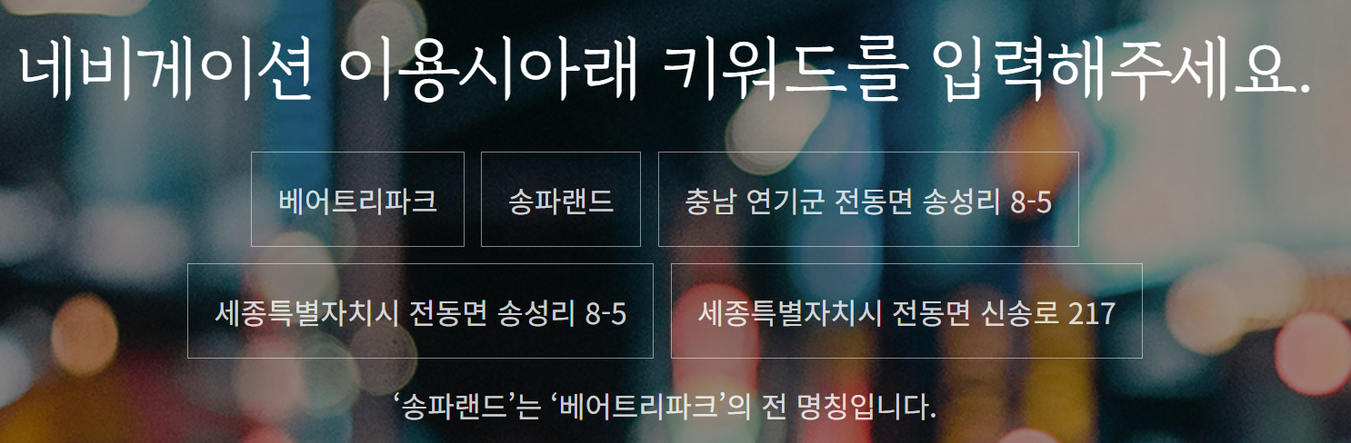 베어트리파크는 세종특별자치시 신송로 217번지에 위치해 있어요.
