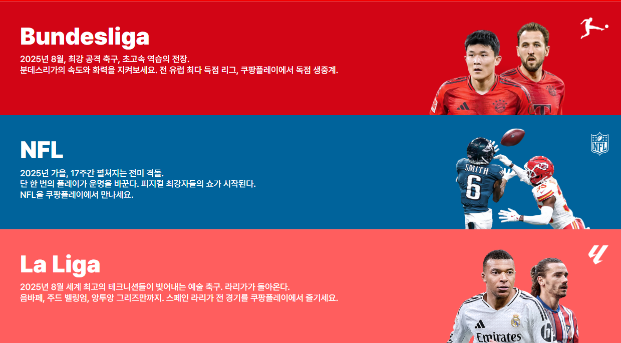 • 단, 쿠팡 와우 회원 전용이며 스포츠 패스는 별도 추가 요금 필요