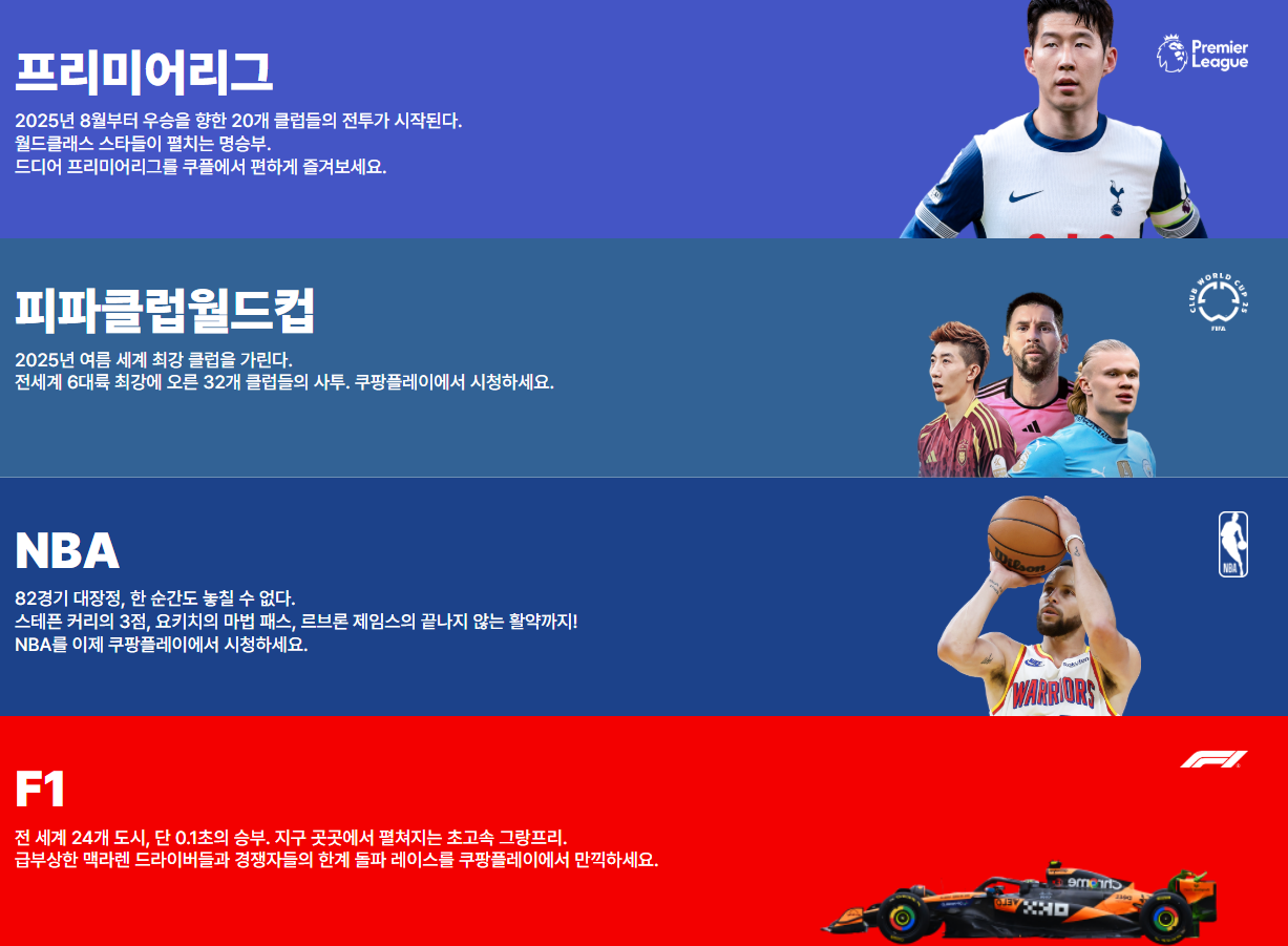 • 쿠팡플레이 스포츠 패스로 축구, 농구, F1 등 글로벌 리그를 한눈에!