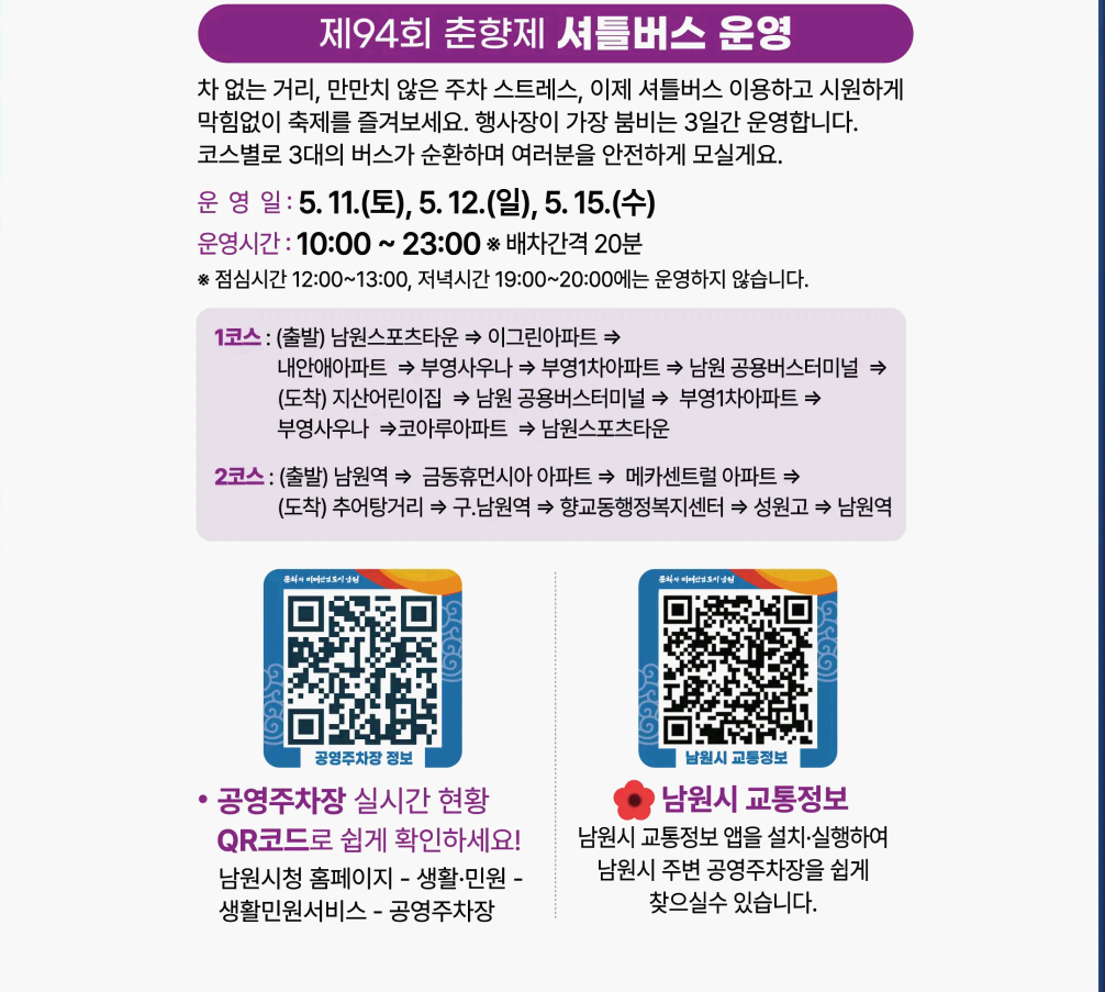 춘향제 셔틀버스 운영
