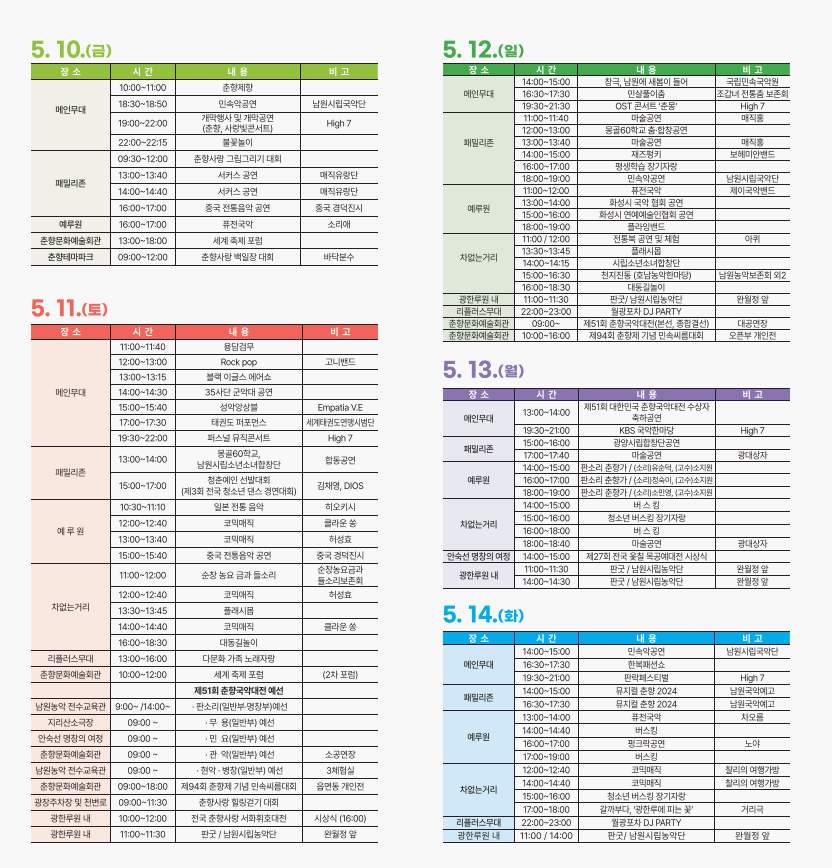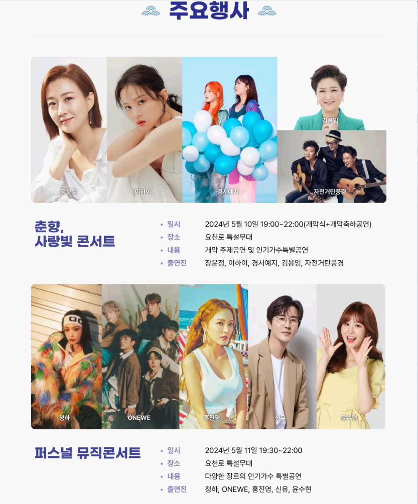 축제기간 2024.05.10(금)~ 5.16(목) / 7일간