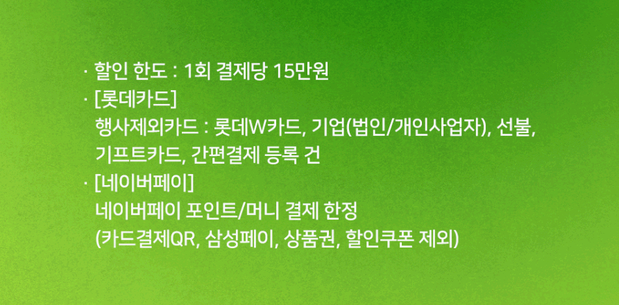 • 결제 : 롯데카드, 네이버페이머니 사용 가능기타 혜택 및 이벤트