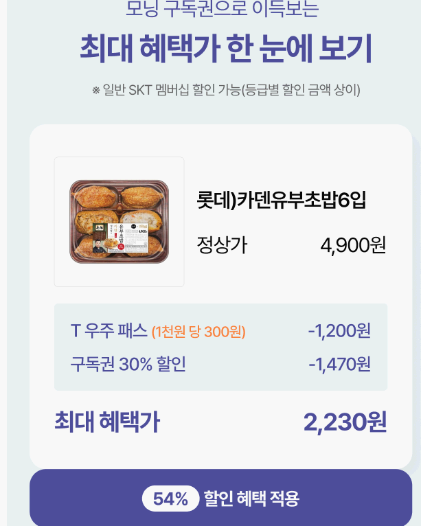 모닝 구독권 700원 / 모닝 전 상품 30% 할인