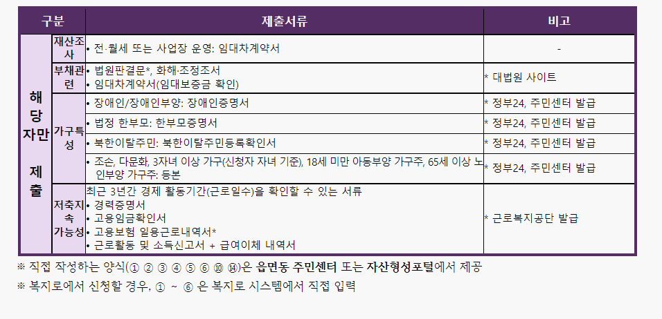 • 가구 소득: 소득인정액 기준 중위소득 100% 이하.