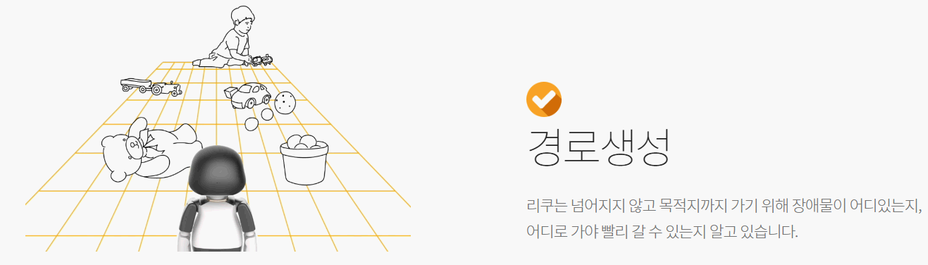 리쿠는 넘어지지 않고 목적지까지 가기 위해 장애물이 어디 있는지, 어디로 가야 빨리 갈 수 있는지 알 수 있습니다