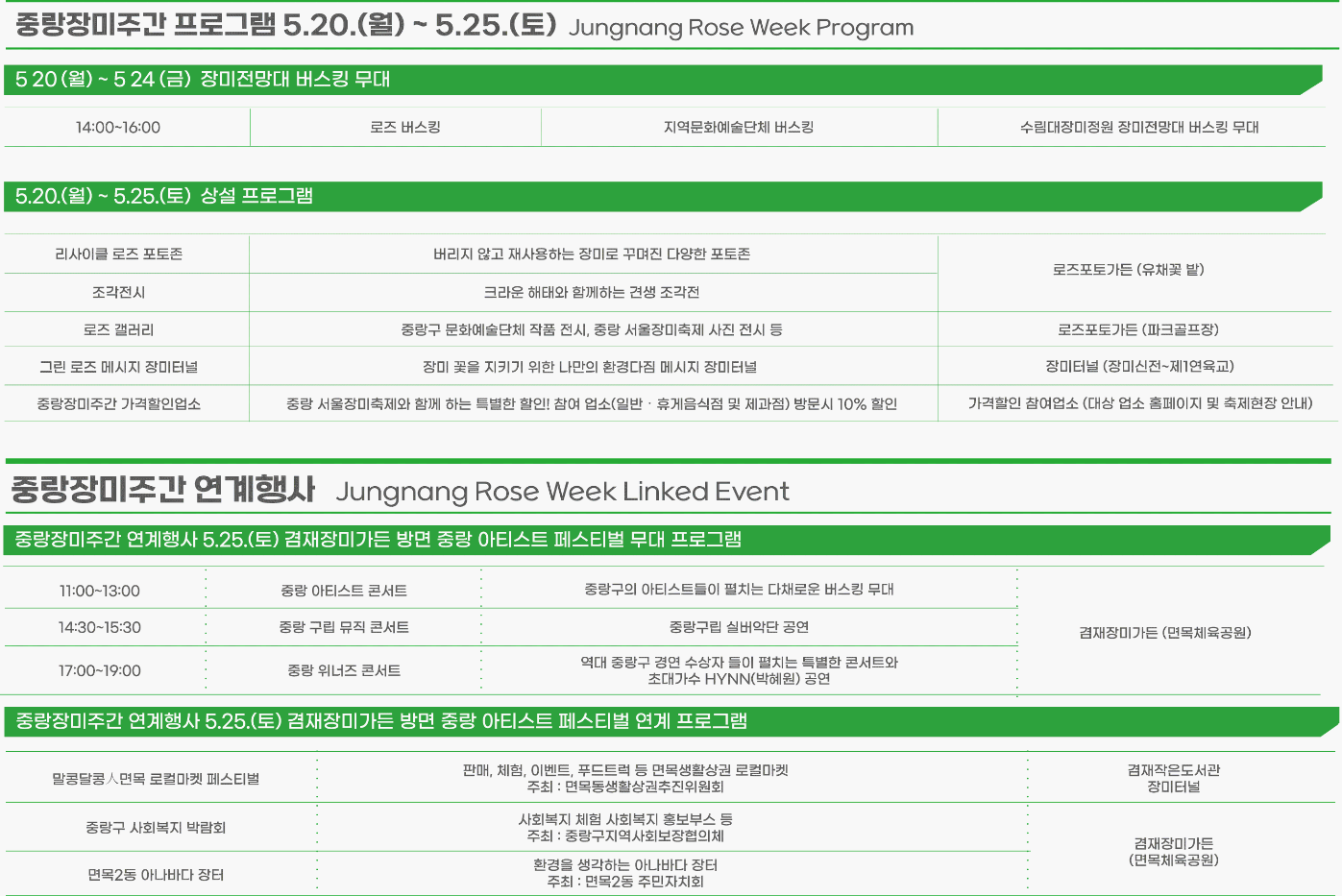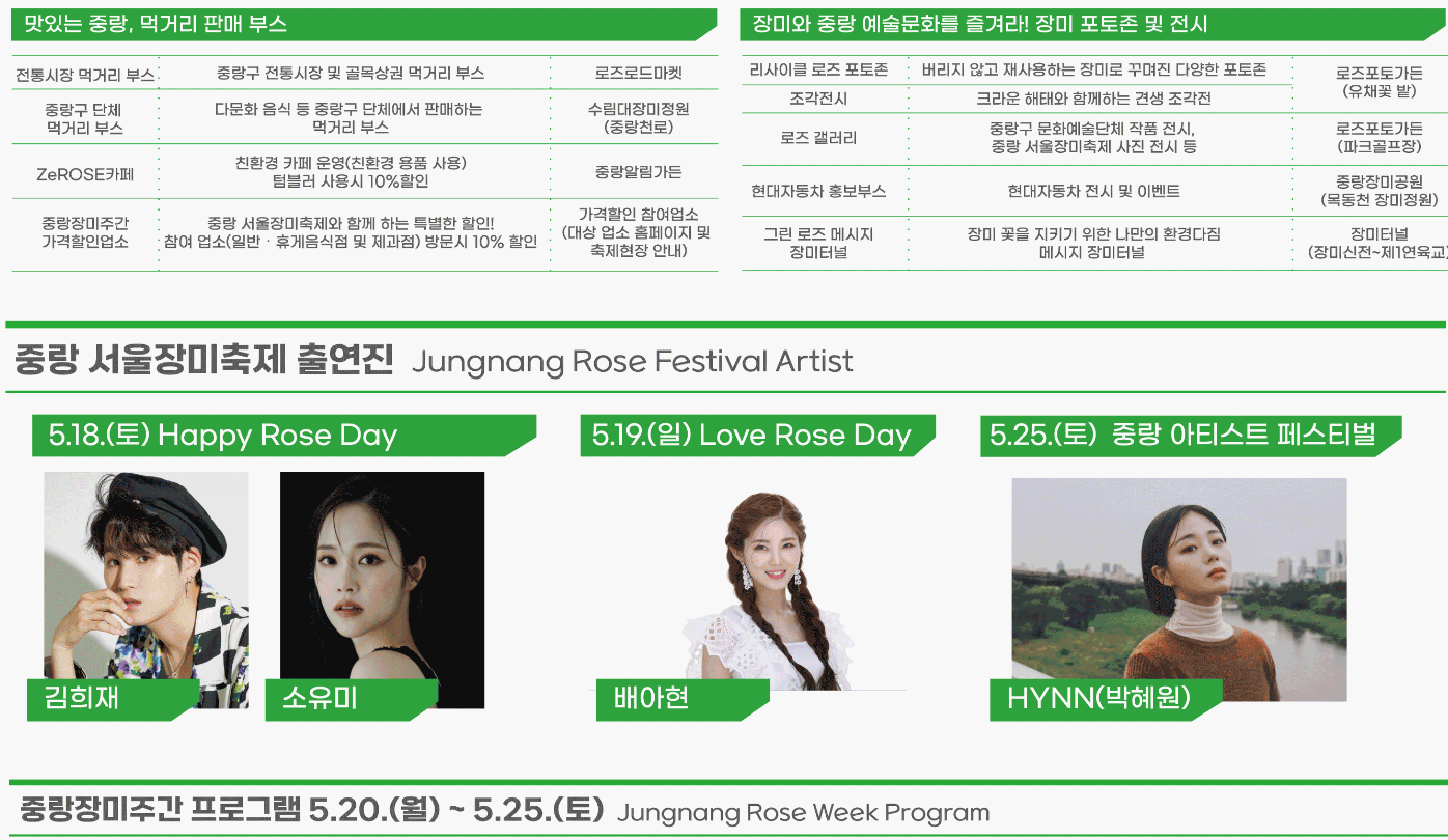 중랑 장미주간 프로그램 5.20(월)~ 5.25(토)