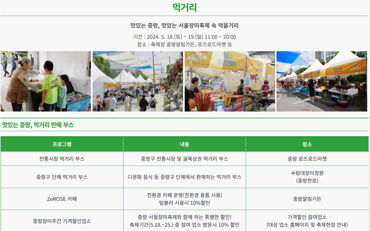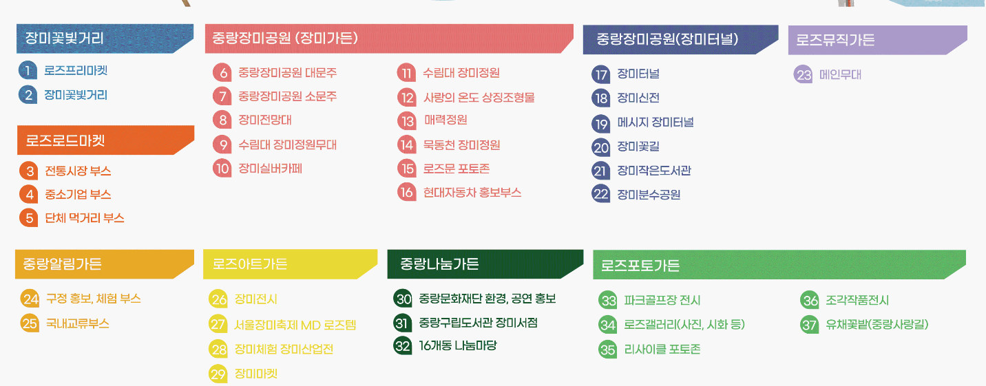 장소 : 축제장 중랑 알림 가든, 로즈로드마켓 등