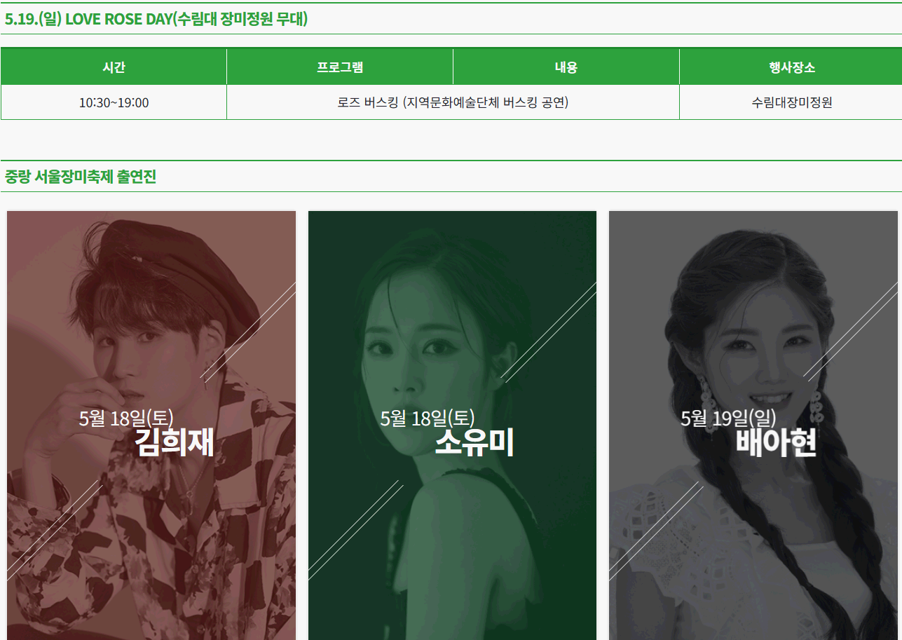 중랑 서울장미축제 출연진