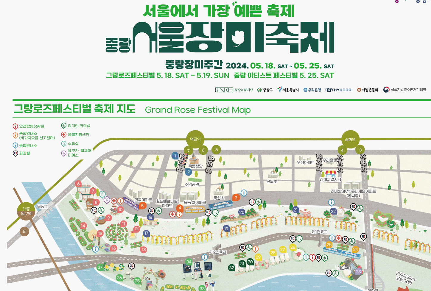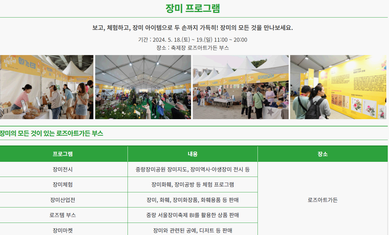 기간 : 2024.05.18(토)~ 2024.05.25(토) 8일간 중랑 장미주간