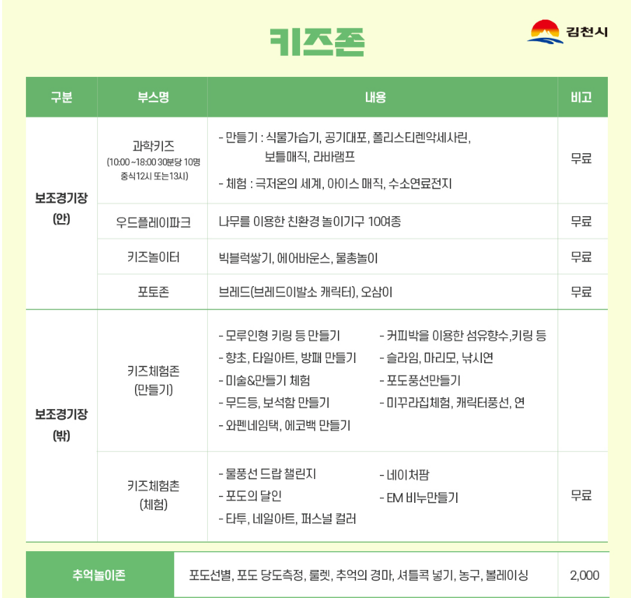 • 행사 장소: 경상북도 김천시 운동장길 1, 김천종합스포츠타운 보조경기장 일원
